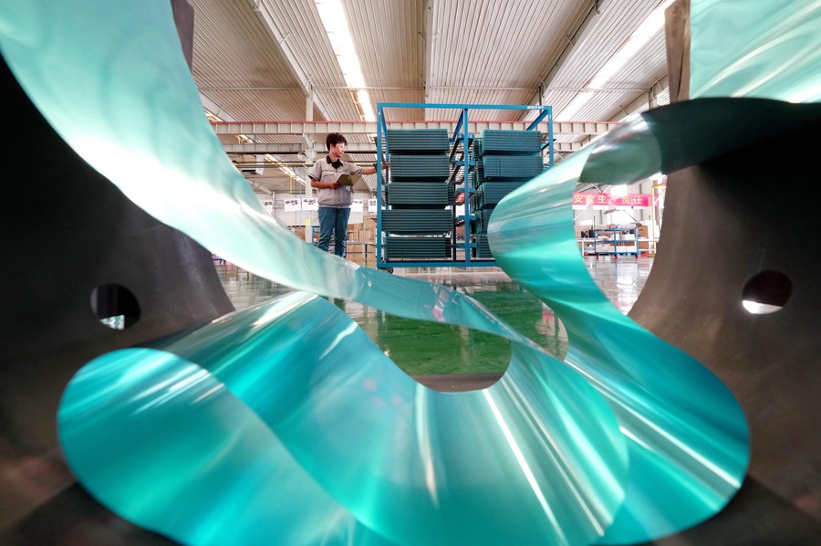 A worker is seen at a workshop of a refrigeration equipment company in Jinzhou City, north China's Hebei Province, Sept. 19, 2023. (Xinhua/Yang Shiyao)