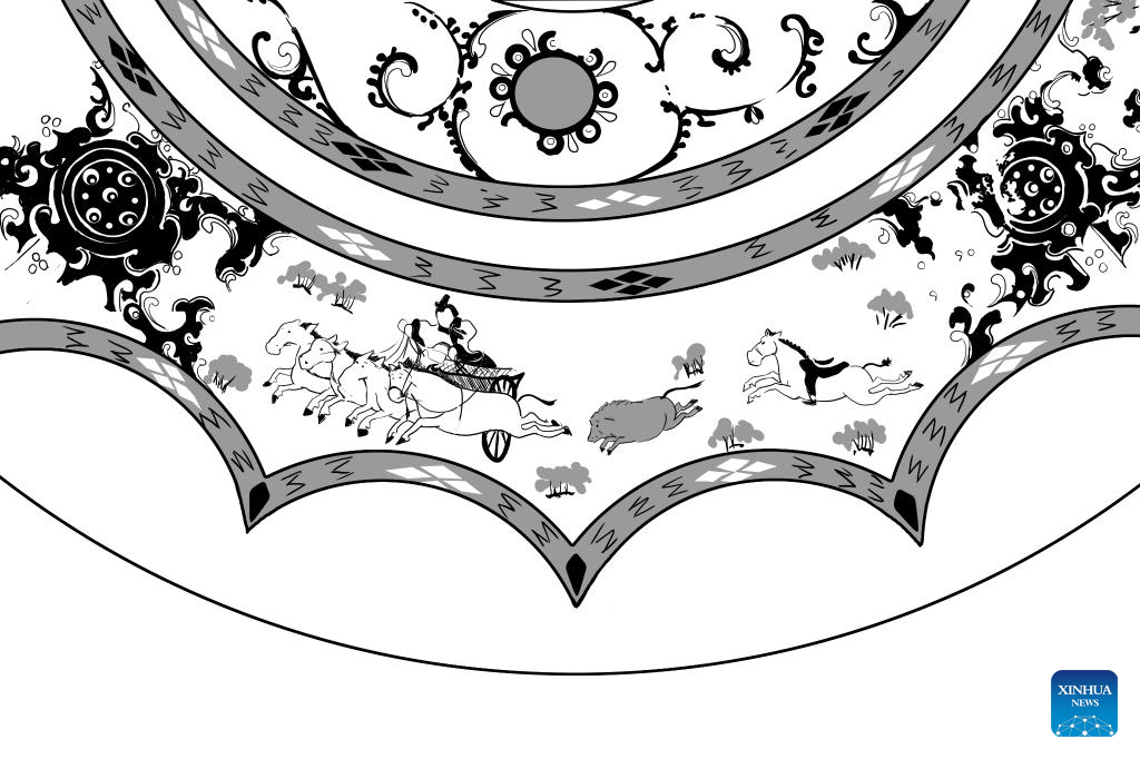 This draft shows part of a bronze mirror with patterns depicting a hunting event, collected at Xi'an Museum in Xi'an, northwest China's Shaanxi Province. (Xinhua/Li He)