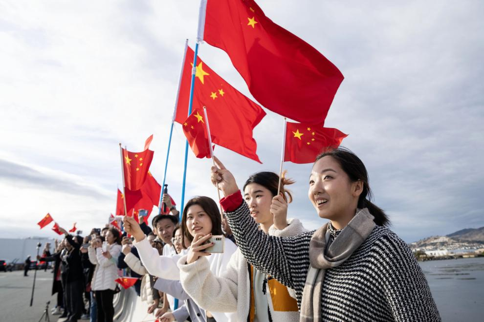 People welcome Chinese President Xi Jinping in San Francisco, the United States, Nov. 14, 2023. Xi on Tuesday arrived in San Francisco for a summit with U.S. President Joe Biden, and to attend the Asia-Pacific Economic Cooperation (APEC) Economic Leaders' Meeting. (Xinhua/Liu Jie)