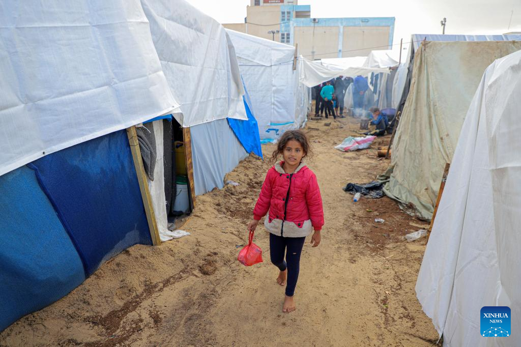A displaced child is seen at a temporary shelter converted from a school in the southern Gaza Strip city of Rafah, on Nov. 15, 2023. According to the UN Relief and Works Agency for Palestine Refugees in the Near East (UNRWA), almost 1.5 million people have been displaced across the Gaza Strip since October 7, when Hamas carried out a surprise attack on southern Israel. (Photo by Khaled Omar/Xinhua)