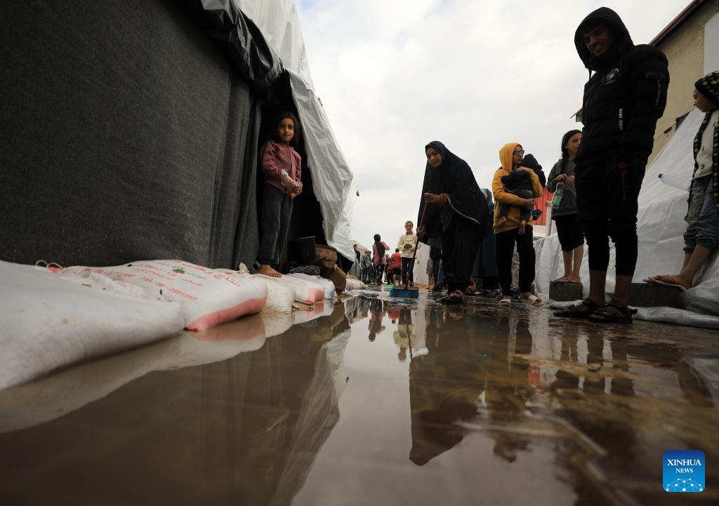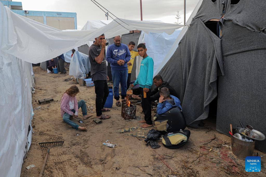 Displaced people are seen at a temporary shelter converted from a school in the southern Gaza Strip city of Rafah, on Nov. 15, 2023. According to the UN Relief and Works Agency for Palestine Refugees in the Near East (UNRWA), almost 1.5 million people have been displaced across the Gaza Strip since October 7, when Hamas carried out a surprise attack on southern Israel. (Photo by Khaled Omar/Xinhua)