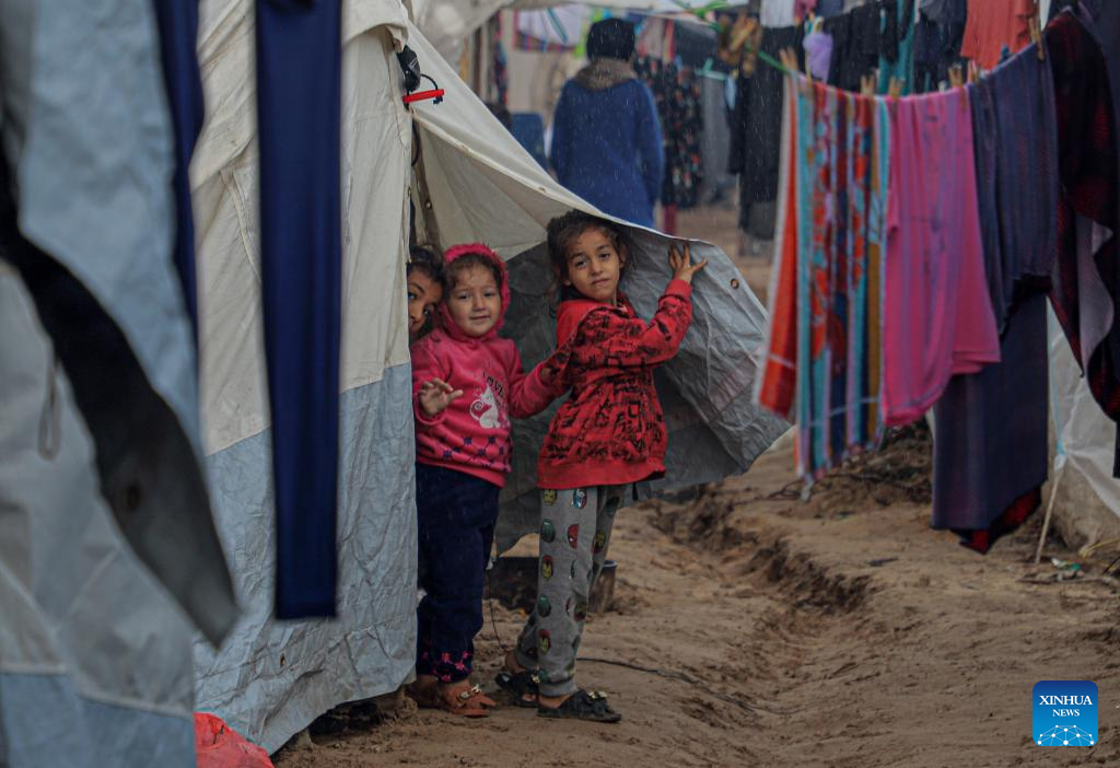 Displaced children are seen at a temporary shelter in the southern Gaza Strip city of Khan Younis, on Nov. 15, 2023. According to the UN Relief and Works Agency for Palestine Refugees in the Near East (UNRWA), almost 1.5 million people have been displaced across the Gaza Strip since October 7, when Hamas carried out a surprise attack on southern Israel. (Photo by Rizek Abdeljawad/Xinhua)