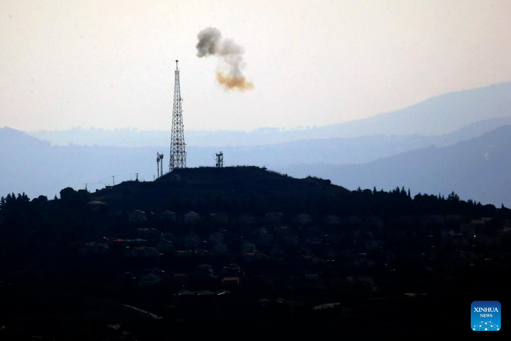 Photo taken on Nov. 16, 2023 shows Israeli artillery shelling near Kafr Shuba, Lebanon. Two Hezbollah fighters were killed and one was injured on Thursday by Israel's heavy artillery fires on the Lebanon-Israel borders, Lebanese military sources told Xinhua. (Photo by Ali Hashisho/Xinhua)