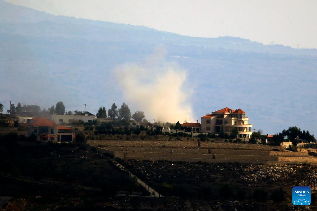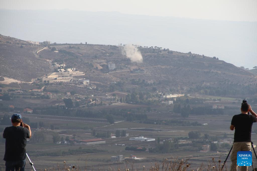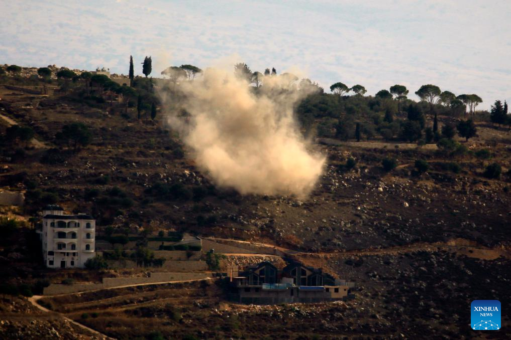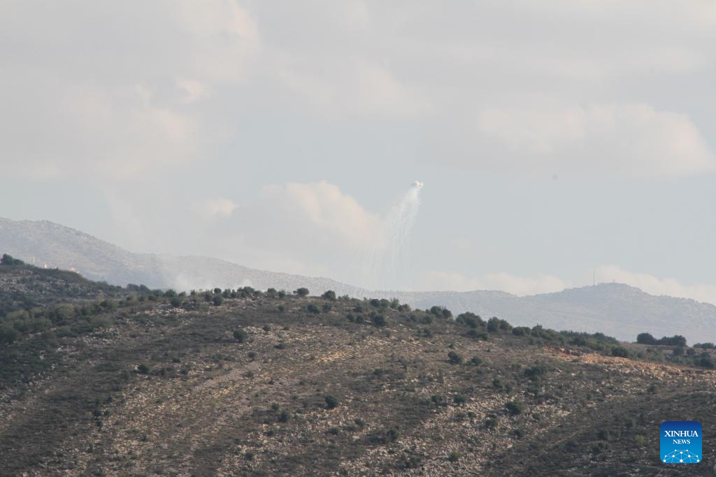 Photo taken on Nov. 16, 2023 shows Israeli artillery shelling near the town of Khiam, southern Lebanon. Two Hezbollah fighters were killed and one was injured on Thursday by Israel's heavy artillery fires on the Lebanon-Israel borders, Lebanese military sources told Xinhua. (Photo by Taher Abu Hamdan/Xinhua).