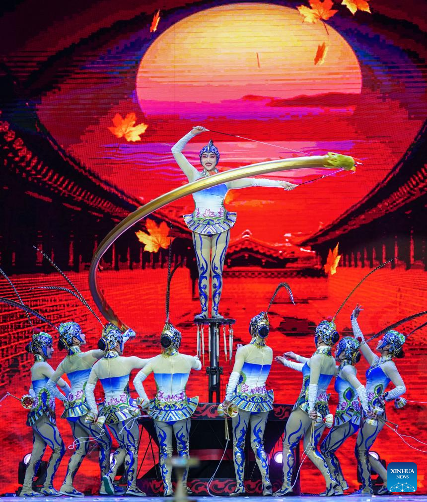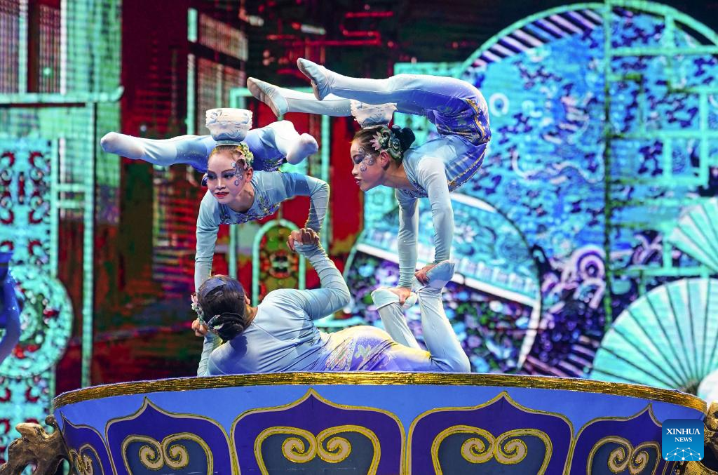 Actors perform during an acrobatic show in Beijing, capital of China, Nov. 17, 2023. A two-day acrobatic show kicked off in Beijing on Saturday. Eleven acrobatic art performing groups across the country bring 12 programs to the show. (Xinhua/Chen Yehua)