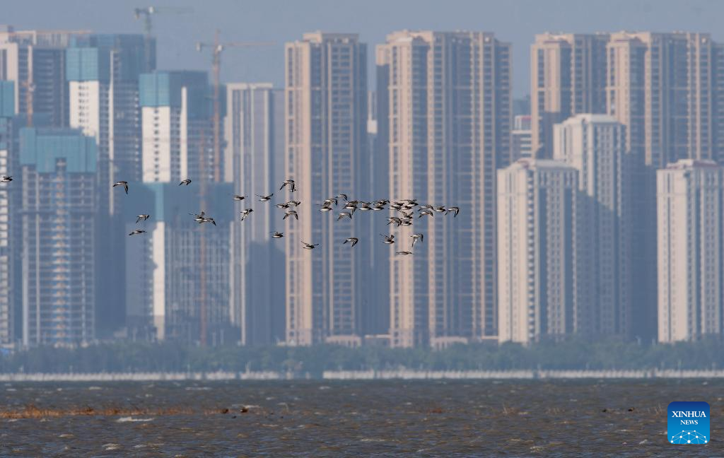 Birds fly in the Quanzhou Bay estuary wetland in southeast China's Fujian Province, Nov. 18, 2023. (Xinhua/Wei Peiquan)