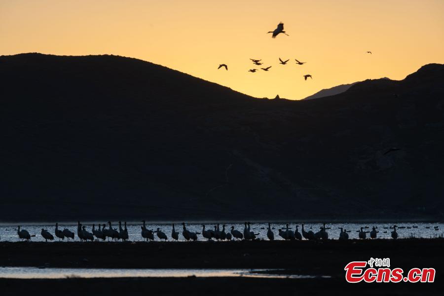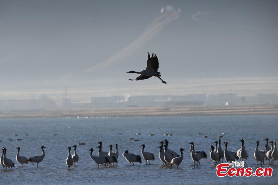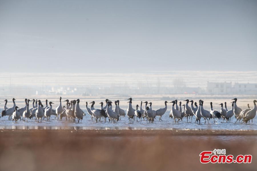 2,000 black-necked cranes arrive at Linzhou County in Lhasa for wintering