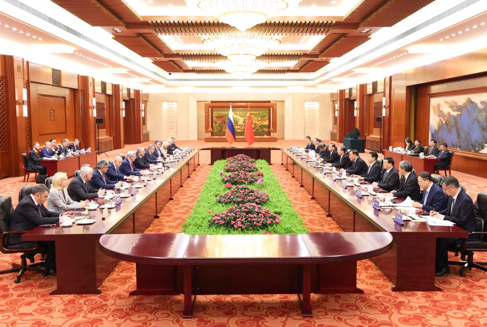 Zhao, chairman of the National People's Congress (NPC) Standing Committee, said that under the strategic guidance of the two countries' top leaders, the China-Russia comprehensive strategic partnership of coordination for the new era has maintained the correct progressive direction. Political mutual trust has been continuously consolidated, practical cooperation has been carried out vigorously and people-to-people and sub-national exchanges have been continuously deepened, setting an example of new model of major-country relations.