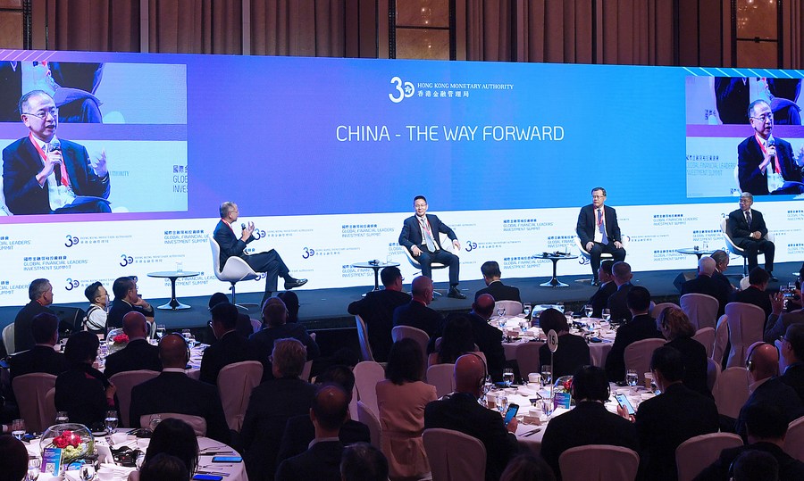 This photo taken on Nov. 7, 2023 shows a scene of the main session of the Global Financial Leaders' Investment Summit in Hong Kong, south China. (Xinhua/Chen Duo)