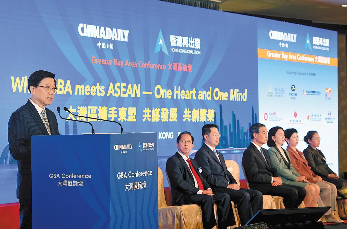 Hong Kong, as a super-connector and a value-adder, is well poised to play a crucial role in furthering cooperation between the Guangdong-Hong Kong-Macao Greater Bay Area of China and the Association of Southeast Asian Nations, both of which are among the world's most economically vibrant regions, prominent political and business leaders said on Wednesday at the Greater Bay Area Conference 2023.