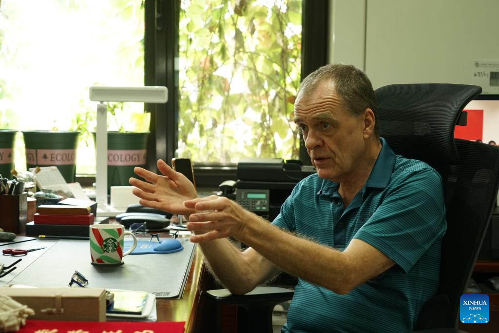 David Ferguson speaks during an interview with Xinhua at his office in Beijing, capital of China, Sept. 18, 2023. (Xinhua/Zhu Haochen)