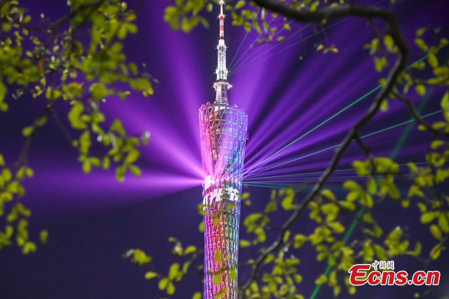 The Canton Tower is illuminated during the 12th Guangzhou international light festival in south China's Guangdong Province, Nov. 21, 2023. (Photo: China News Service/Chen Jimin)