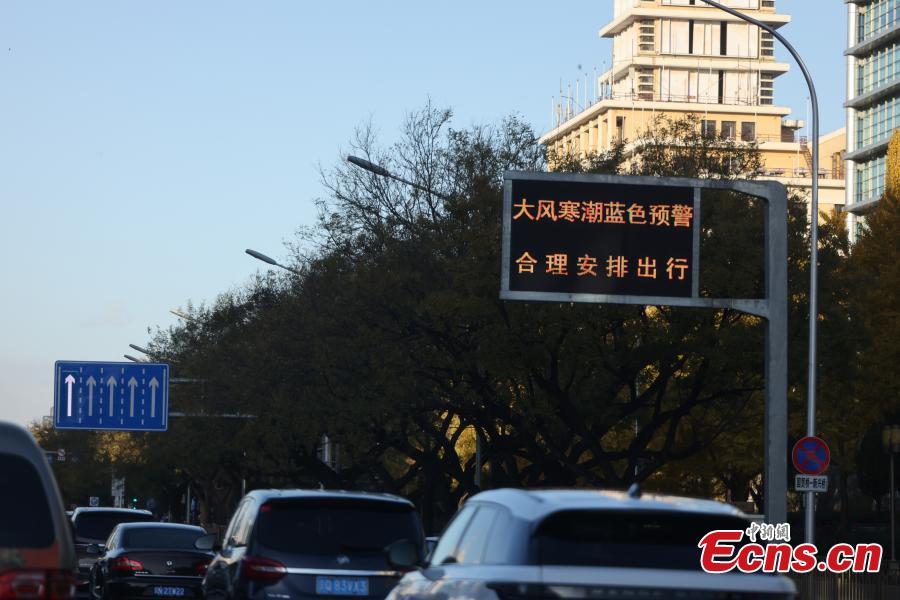 An electric board shows weather forecast information in Beijing, Nov. 23, 2023. (Photo: China News Service/Yang Kejia)