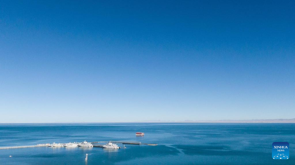 This aerial photo taken on Nov. 23, 2023 shows a view of Qinghai Lake in northwest China's Qinghai Province. (Xinhua/Wang Yan)