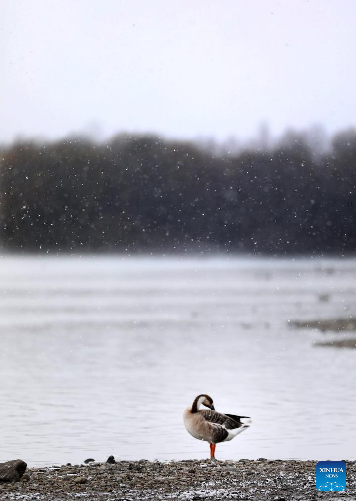 This photo taken on Nov. 23, 2023 shows a migratory bird by the Hunhe River in Shenyang, northeast China's Liaoning Province. (Xinhua/Yao Jianfeng)