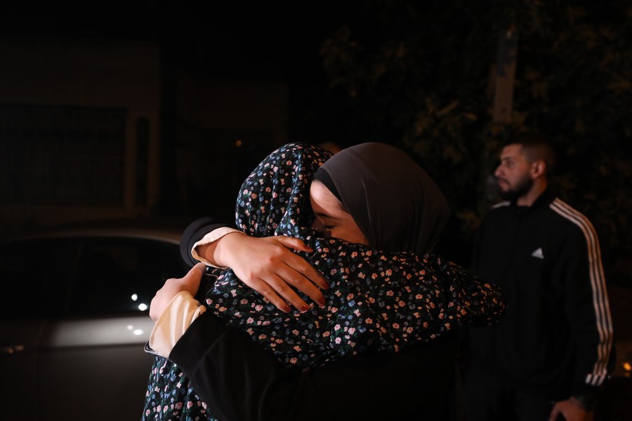 GAZA, Nov. 26 (Xinhua) -- The Al-Qassam Brigades, the armed wing of Hamas, released on Sunday the third batch of hostages from the Gaza Strip under a temporary ceasefire agreement with Israel.