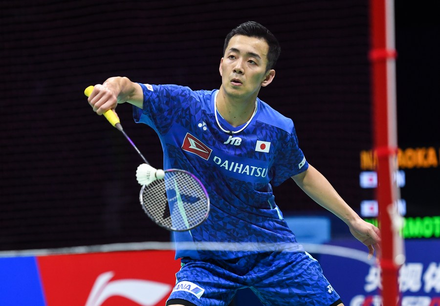 Japan's Kenta Nishimoto hits a return during the men's singles final against his compatriot Kodai Naraoka. (Xinhua/Mao Siqian)