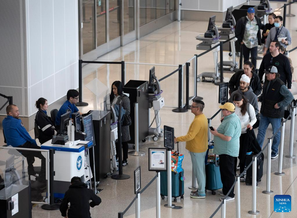 Passengers are pictured at San Francisco International Airport in San Francisco, the United States, Nov. 26, 2023. The U.S. Transportation Security Administration (TSA) expects to screen 2.9 million air passengers on Nov. 26, which will likely be the busiest travel day. (Photo by Li Jianguo/Xinhua)