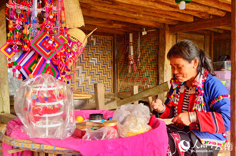 A woman of the De'ang ethnic group makes De'ang brocade. (People's Daily Online/Liu Yi)
