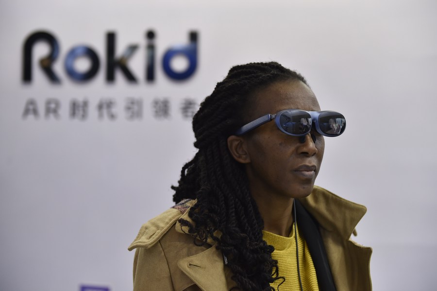 A visitor tries on AR glasses at the second Global Digital Trade Expo in Hangzhou, east China's Zhejiang Province, Nov. 24, 2023. (Xinhua/Liu Lingyi)