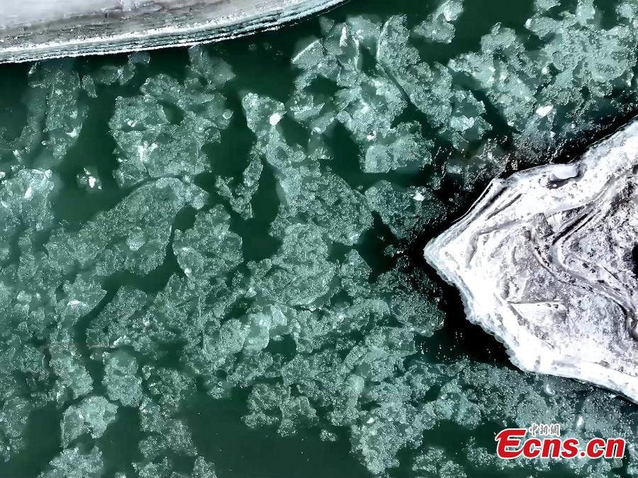 Crystal ice floats in the upper stream of Heihe River in Qilian County, Haibei Tibetan autonomous prefecture, northwest China's Qinghai Province. (Photo: China News Service/Bao Lei)