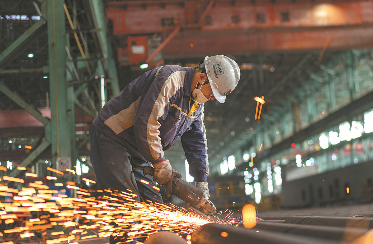 An employee works at a plant of China Baowu Steel Group in Maanshan, Anhui province. [LUO JISHENG/FOR CHINA DAILY]