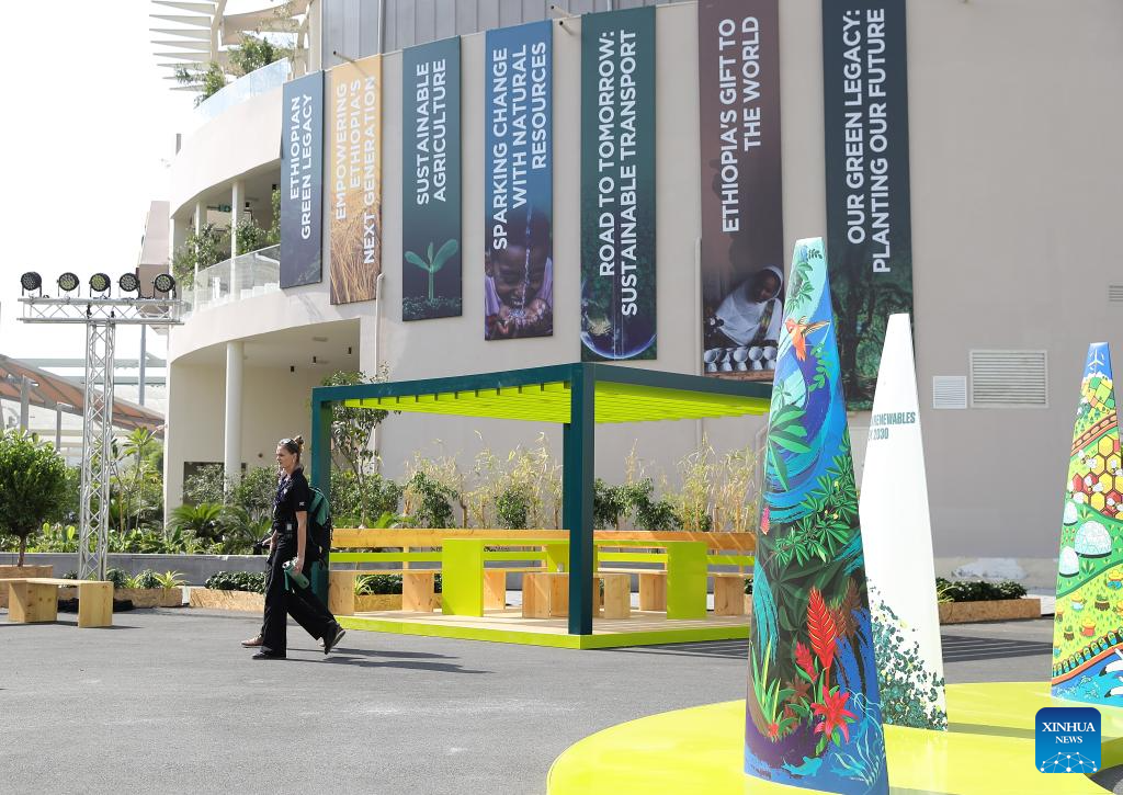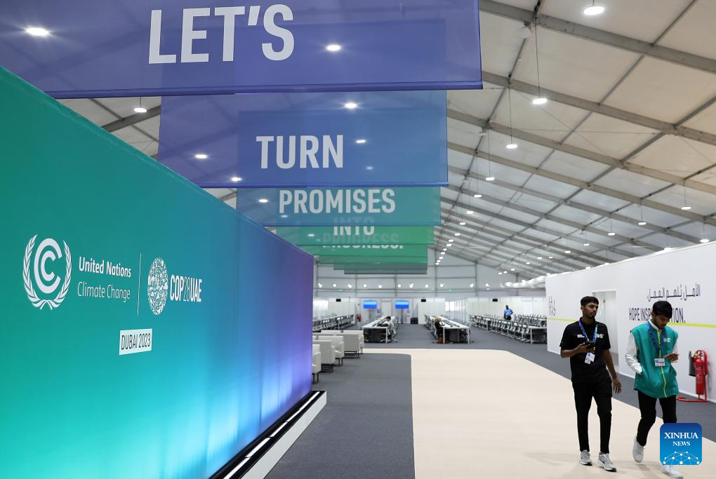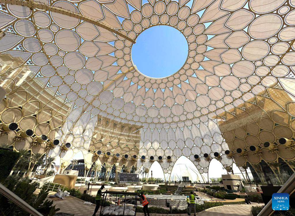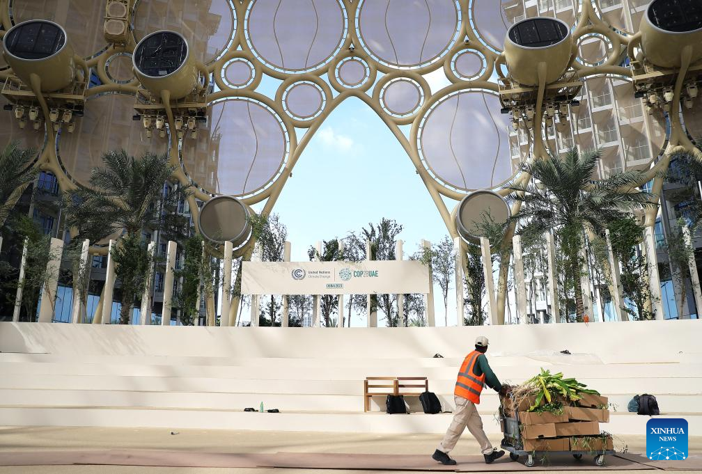A worker is seen in the Expo City in Dubai, the United Arab Emirates, Nov. 29, 2023. COP28, which refers to the 28th session of the Conference of the Parties to the United Nations Framework Convention on Climate Change, is scheduled to be held in the Expo City of Dubai, the United Arab Emirates, from Nov. 30 to Dec. 12. (Xinhua/Wang Dongzhen)