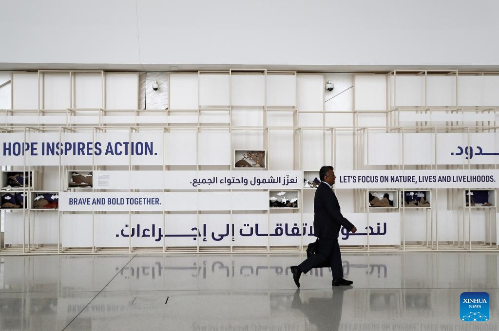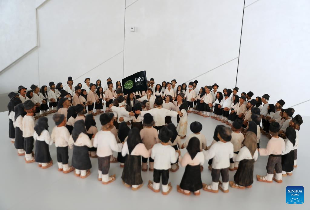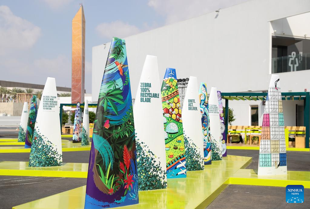 An artwork of COP28 is seen in the Expo City in Dubai, the United Arab Emirates, Nov. 29, 2023. COP28, which refers to the 28th session of the Conference of the Parties to the United Nations Framework Convention on Climate Change, is scheduled to be held in the Expo City of Dubai, the United Arab Emirates, from Nov. 30 to Dec. 12. (Xinhua/Wang Dongzhen)