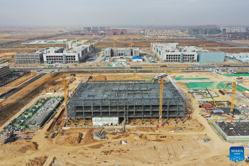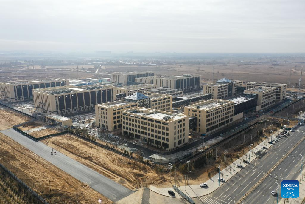 This aerial photo taken on Nov. 28, 2023 shows a financial technology center project of Bank of China in Horinger, Hohhot City, north China's Inner Mongolia. The Horinger data center cluster, located in Hohhot City of north China's Inner Mongolia, can accommodate about 950,000 servers, placing it among the leading data centers in China in terms of computing power. (Xinhua/Li Zhipeng)