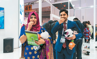 Bangladeshi travel agents taste red jujubes from northwest China's Xinjiang Uygur Autonomous Region at the China International Travel Mart 2023. (Xinhua/Chen Xinbo)
