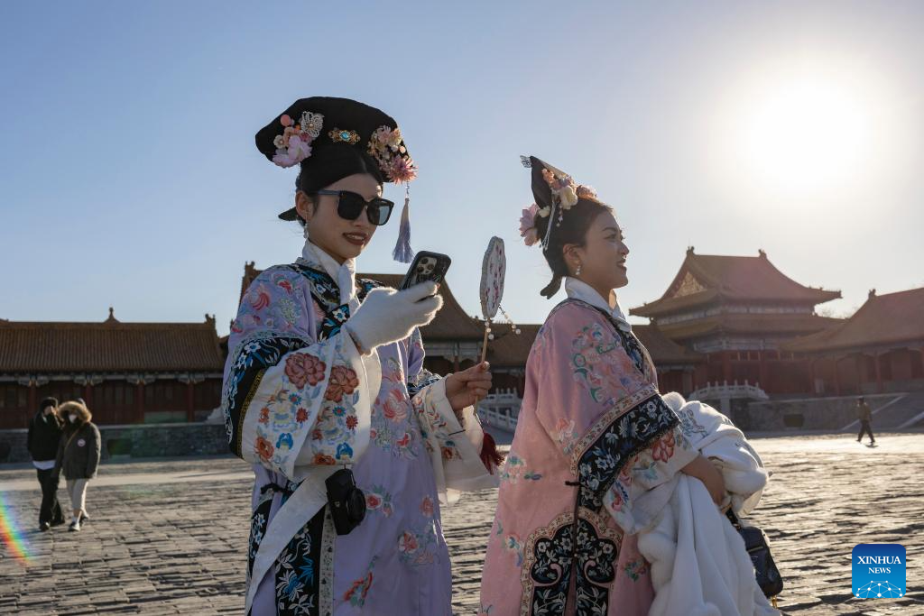 Tourists visit the Palace Museum, also known as the Forbidden City, in Beijing, capital of China, Nov. 29, 2023. (Xinhua/Li Xin)