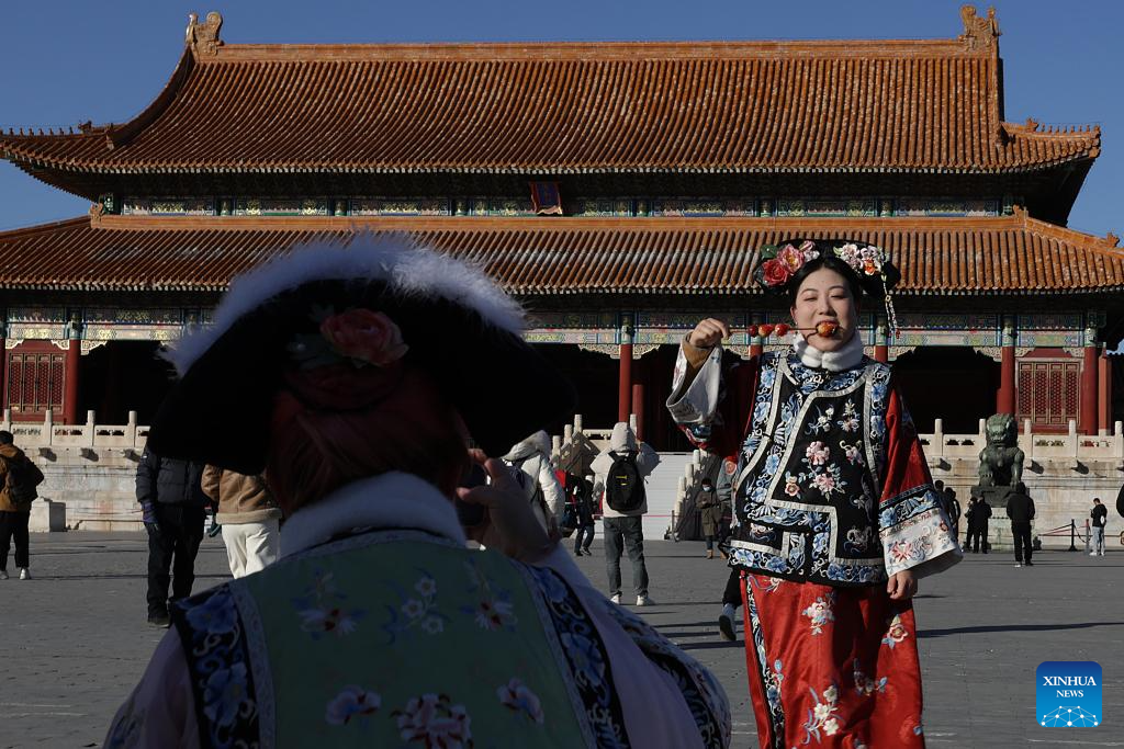 Tourists visit the Palace Museum, also known as the Forbidden City, in Beijing, capital of China, Nov. 29, 2023. (Xinhua/Chen Yehua)