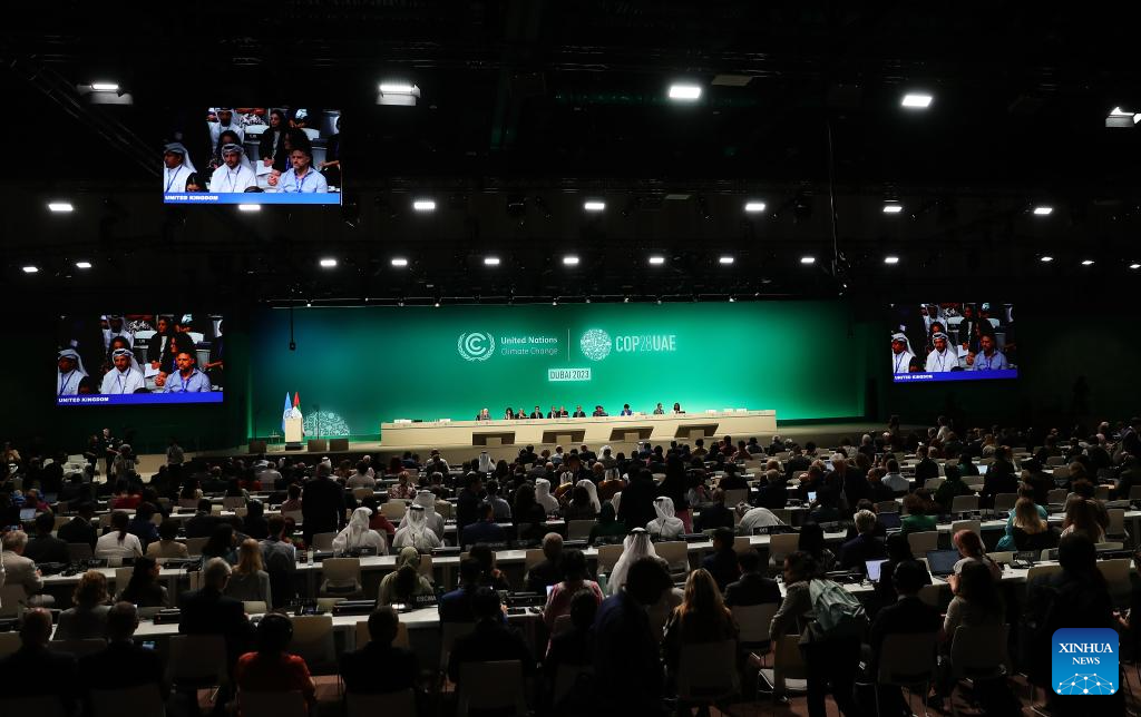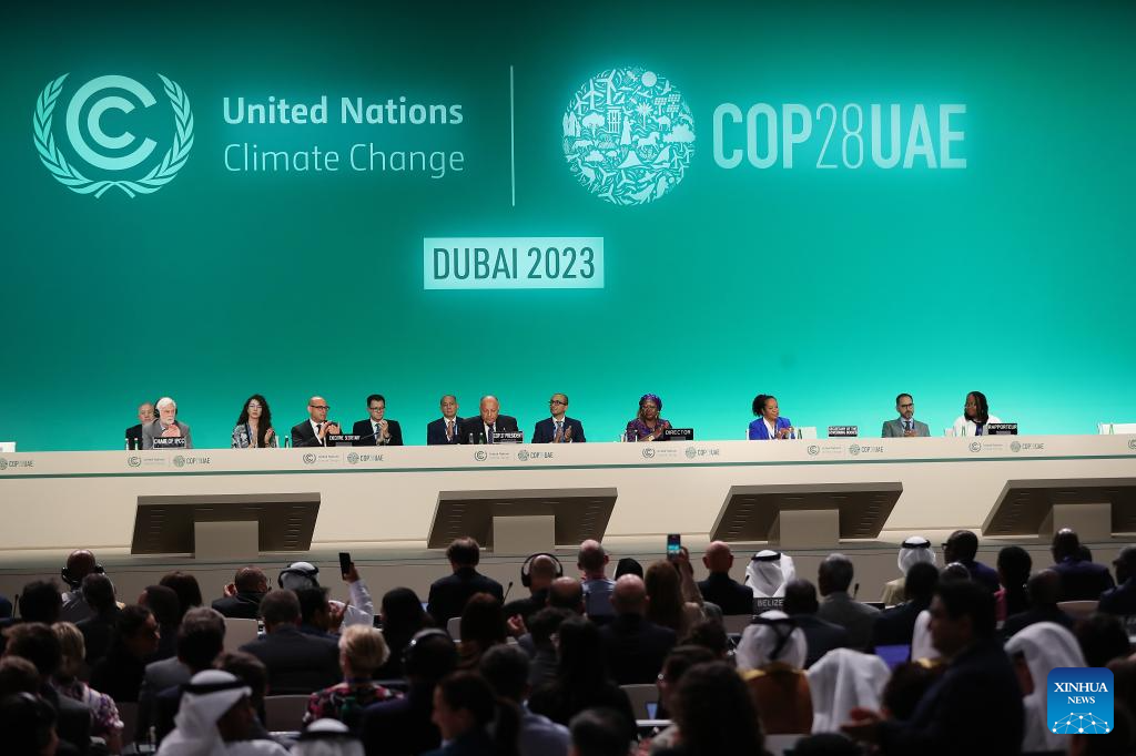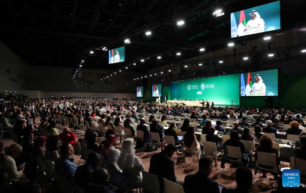 This photo taken on Nov. 30, 2023 shows the opening ceremony of the 28th session of the Conference of the Parties to the United Nations Framework Convention on Climate Change, or COP28, in Dubai, the United Arab Emirates. (Xinhua/Wang Dongzhen)