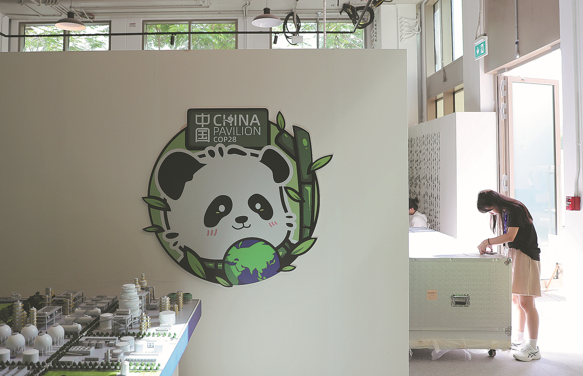 The China pavilion will host more than 100 events on the sidelines of COP28. The pavilion, featuring two meeting areas and one exhibition area, is on the first floor of the Chinese delegation's office.