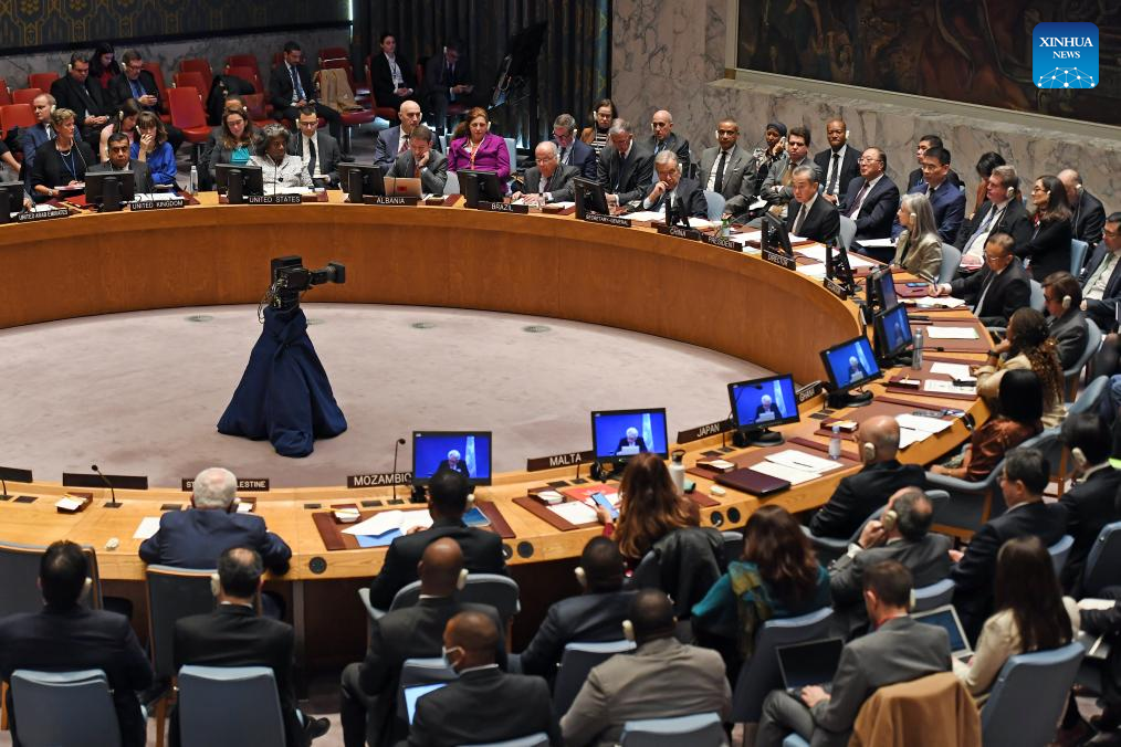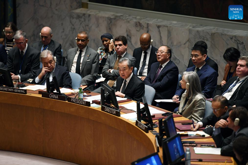 As the rotating president of the United Nations Security Council for November, China holds a Security Council high-level meeting on the Palestinian-Israeli issue here on Nov. 29, 2023. Chinese Foreign Minister Wang Yi, also a member of the Political Bureau of the Communist Party of China Central Committee, chairs the meeting. Foreign ministers and high-level representatives from nearly 20 countries, including Brazil, Palestine, Qatar, Jordan, Saudi Arabia, Egypt, Indonesia, Trkiye, Slovenia, and Malaysia, as well as all members of the Security Council, attended the meeting. UN Secretary-General Antonio Guterres and the UN Special Coordinator for the Middle East Peace Process Tor Wennesland briefed the meeting on the situation. (Xinhua/Li Rui)