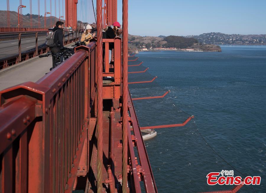 Pedestrians walk across the Golden Gate Bridge in San Francisco, California, the United States, Nov. 30, 2023. (Photo: China News Service/Liu Guanguan)