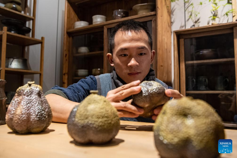 This photo taken on Nov. 14, 2023 shows a pottery artwork by Guang Yongshuang in Chongqing, southwest China. (Xinhua/Tang Yi)