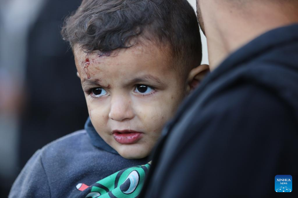 A wounded child is pictured at a hospital in central Gaza Strip city of Deir el-Balah, Dec. 3, 2023. (Xinhua)