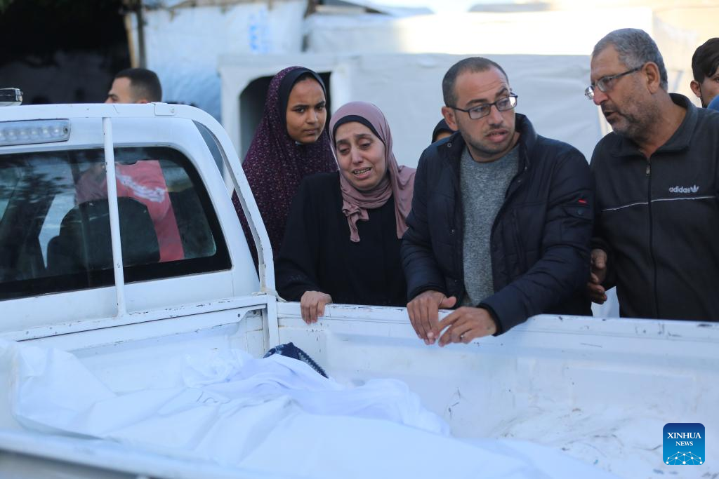 People mourn for victims killed in airstrikes in central Gaza Strip city of Deir el-Balah, Dec. 3, 2023. (Xinhua)