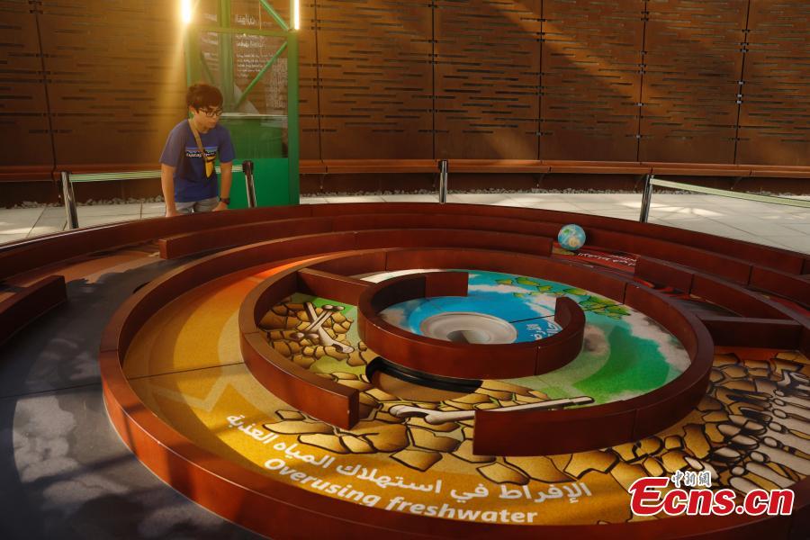 Participants visit an exhibition on climate change at the Green Zone of the 28th session of the Conference of the Parties to the United Nations Framework Convention on Climate Change (COP28), in Dubai, the United Arab Emirates, Dec. 4, 2023. (Photo: China News Service/Han Haidan)