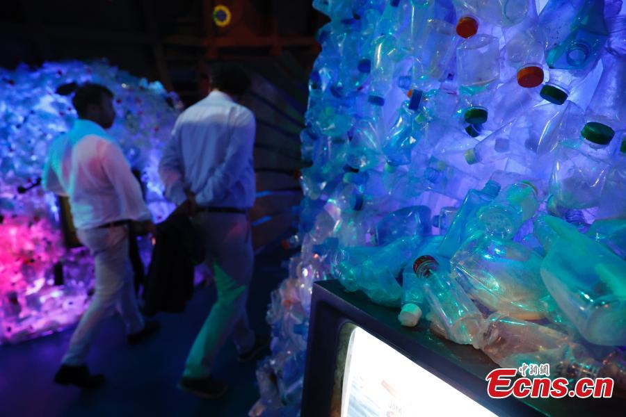 Photo shows an exhibition area on climate change at the Green Zone of the 28th session of the Conference of the Parties to the United Nations Framework Convention on Climate Change (COP28), in Dubai, the United Arab Emirates, Dec. 4, 2023. (Photo: China News Service/Han Haidan)