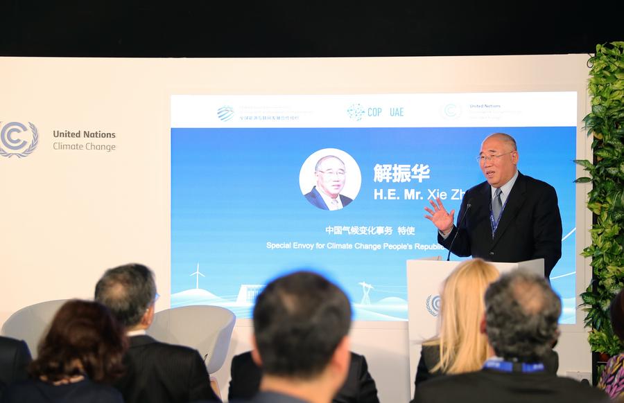 China's special envoy for climate change Xie Zhenhua addresses an energy-themed gathering in Dubai, the United Arab Emirates, Dec. 5, 2023. (Xinhua/Wang Dongzhen)