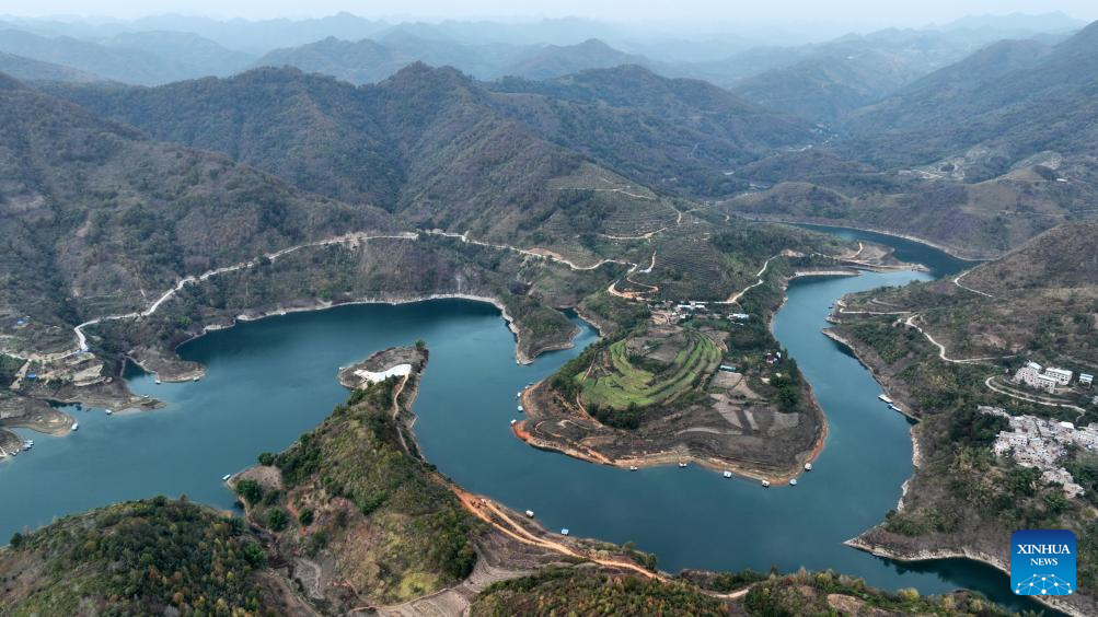 This aerial photo taken on Dec. 6, 2023 shows a view of Hongshui River in Luodian County of Bouyei-Miao Autonomous Prefecture of Qiannan, southwest China's Guizhou Province. (Xinhua/Yang Ying)