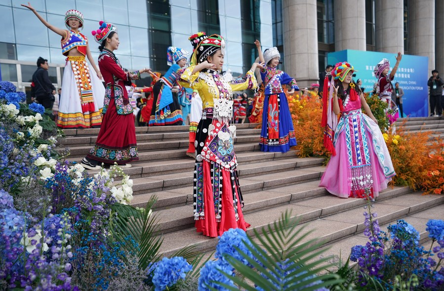 Performers before the opening ceremony of the 5th World Media Summit (Yunnan, China) and the 2nd Yunnan International Communication Forum in Kunming, southwest China's Yunnan Province, Dec. 5, 2023. (Xinhua/Chen Xinbo)