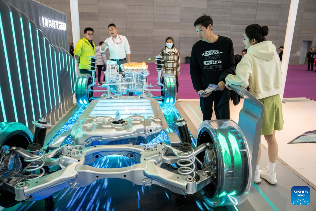 People watch a model of the interior structure of a car during an automobile exposition at the Changsha International Convention and Exhibition Center in Changsha, central China's Hunan Province, Dec. 6, 2023. The 19th China (Changsha) International Automobile Exposition opened here on Wednesday, which gathers products from more than 80 automobile-related brands in an exhibition area of 100,000 square meters. (Xinhua/Chen Sihan)