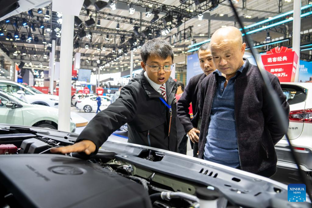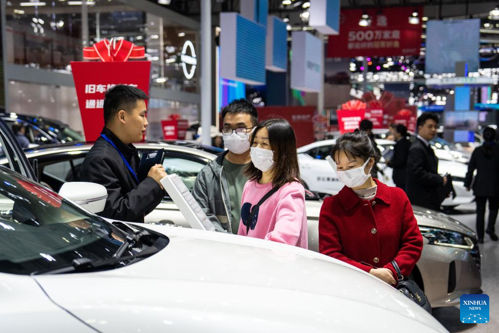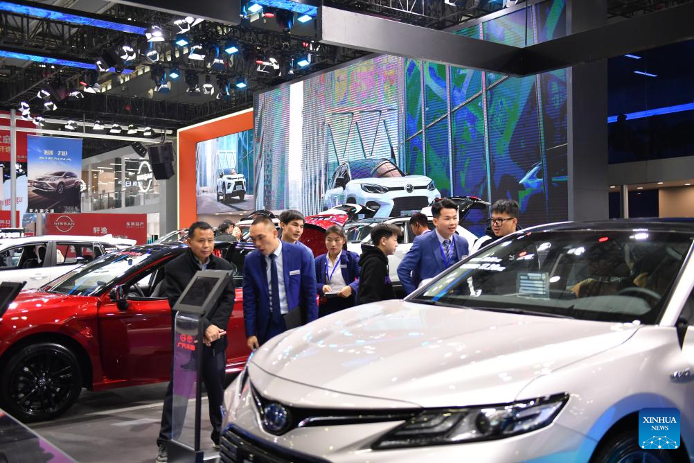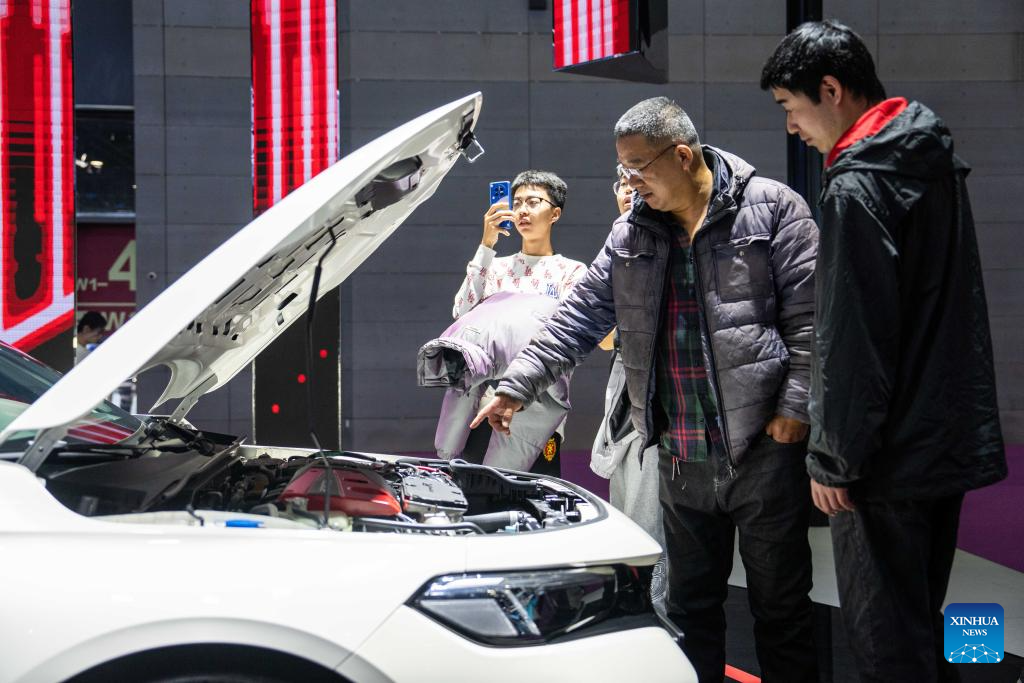 People visit an automobile exposition at the Changsha International Convention and Exhibition Center in Changsha, central China's Hunan Province, Dec. 6, 2023. The 19th China (Changsha) International Automobile Exposition opened here on Wednesday, which gathers products from more than 80 automobile-related brands in an exhibition area of 100,000 square meters. (Xinhua/Chen Zhenhai)