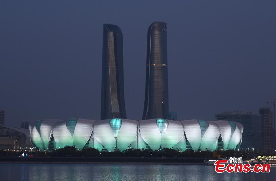 Nigh view of Hangzhou Olympic Sports Center Stadium, nicknamed the Big Lotus, the main stadium for the 19th Asian Games in Hangzhou, east China's Zhejiang Province, Dec. 6, 2023. (Photo: China News Service/Wang Gang)