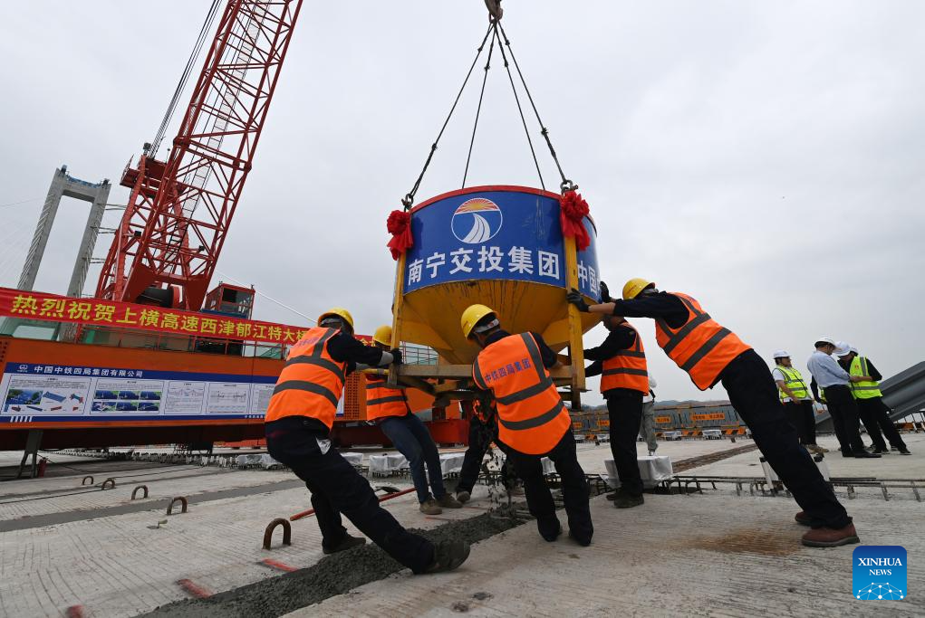 In pics: construction site of Xijin Yujiang grand bridge on Shanglin-Hengzhou expressway in S China