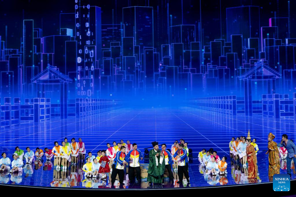 Actors perform during the opening ceremony of the fifth Maritime Silk Road International Arts Festival in Quanzhou, southeast China's Fujian Province, Dec. 8, 2023. (Xinhua/Wei Peiquan)