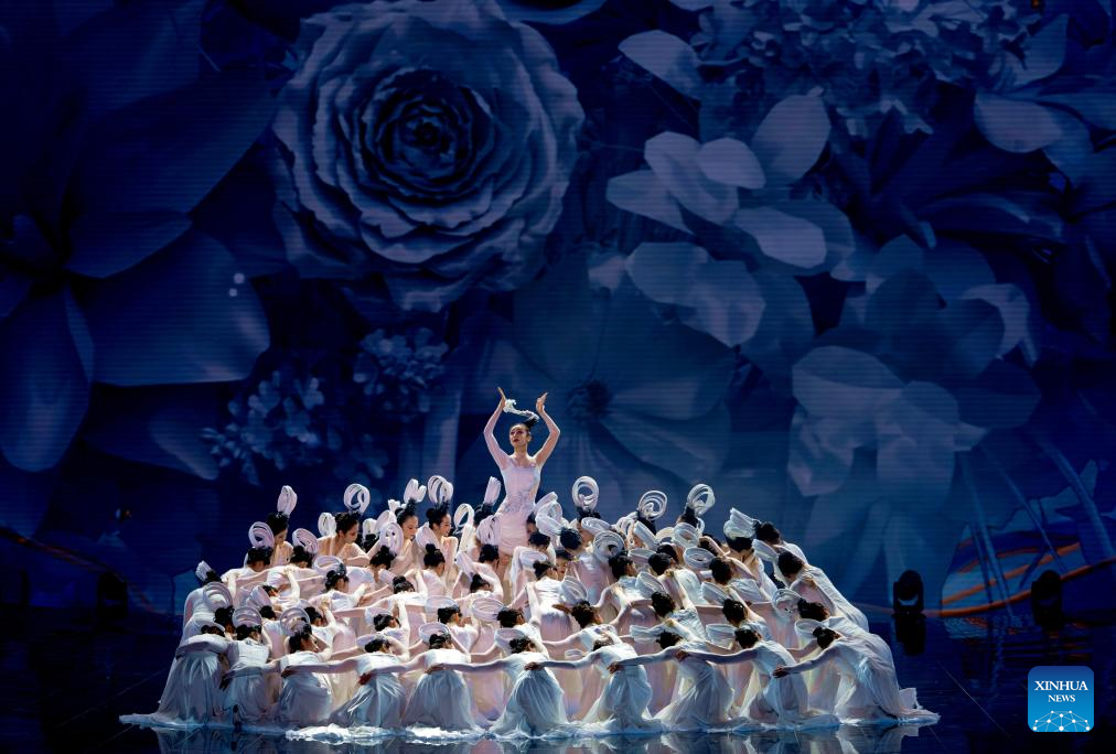 Actors perform dance during the opening ceremony of the fifth Maritime Silk Road International Arts Festival in Quanzhou, southeast China's Fujian Province, Dec. 8, 2023. (Xinhua/Wei Peiquan)